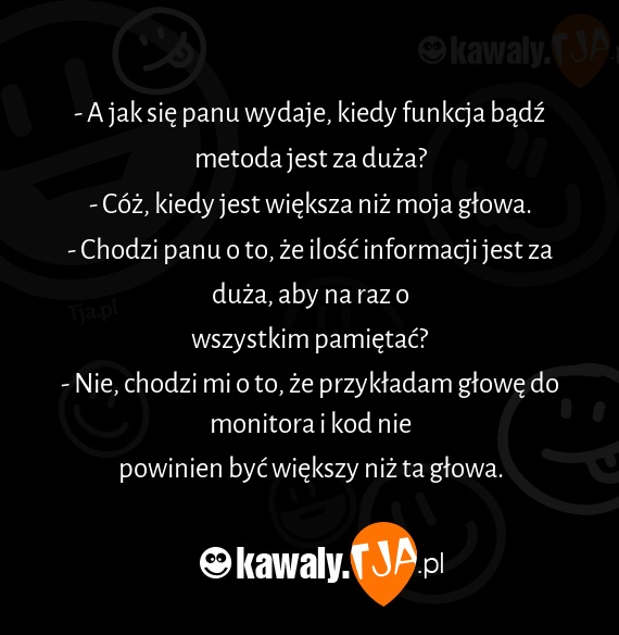 - A jak się panu wydaje, kiedy funkcja bądź metoda jest za duża?