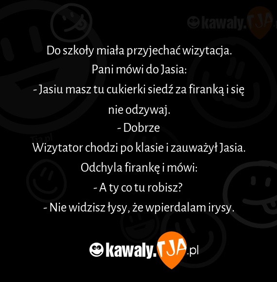 - Jasiu masz tu cukierki siedź za firanką i się nie odzywaj.