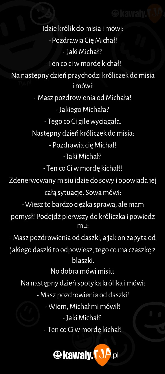 - Masz pozdrowienia od daszki, a jak on zapyta od jakiego daszki to odpowiesz, tego co ma czaszkę z blaszki.