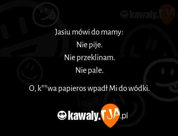 Jasiu mówi do mamy: Nie pije. Nie przeklinam. Nie pale. O, k**wa papieros wpadł Mi do wódki.