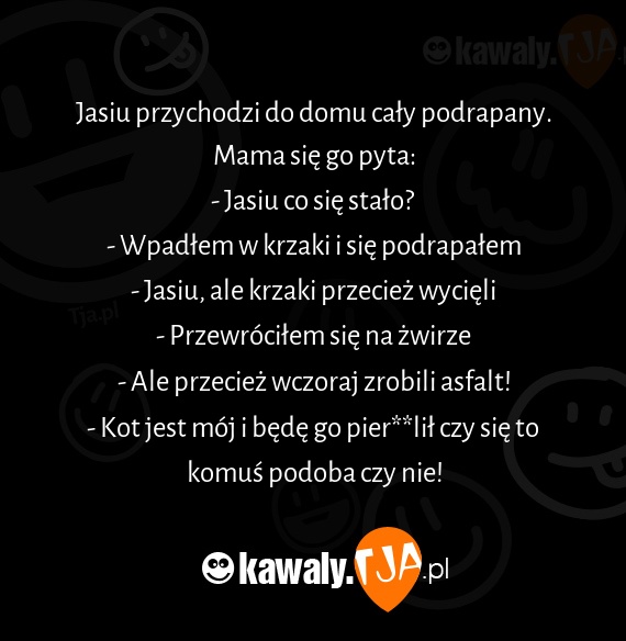 Jasiu przychodzi do domu cały podrapany.