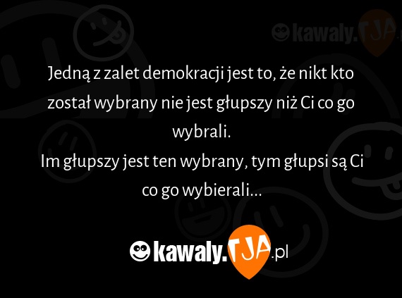 Jedną z zalet demokracji jest to, że nikt kto został wybrany nie jest głupszy niż Ci co go wybrali. Im głupszy jest ten wybrany, tym głupsi są Ci co go wybierali...