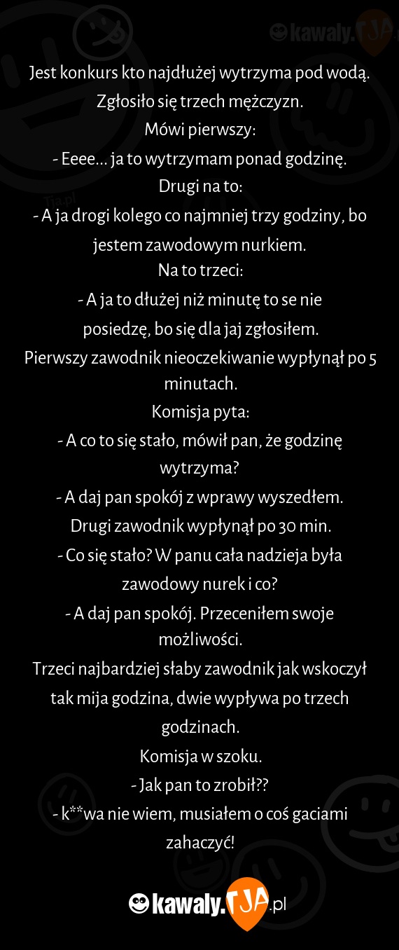 Jest konkurs kto najdłużej wytrzyma pod wodą.