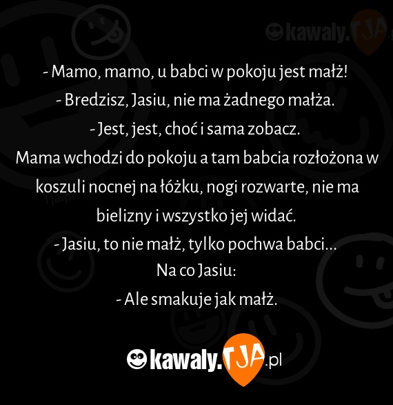 Mama wchodzi do pokoju a tam babcia rozłożona w koszuli nocnej na łóżku, nogi rozwarte, nie ma bielizny i wszystko jej widać.