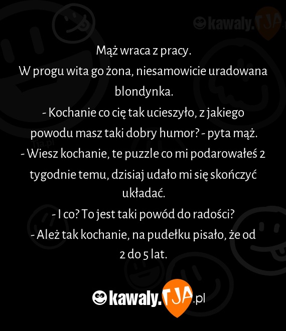 - Wiesz kochanie, te puzzle co mi podarowałeś 2 tygodnie temu, dzisiaj udało mi się skończyć układać.