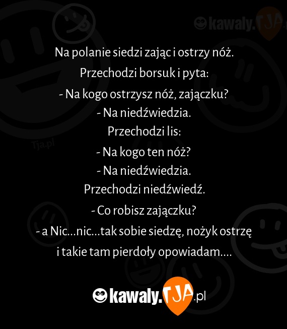 Na polanie siedzi zając i ostrzy nóż.