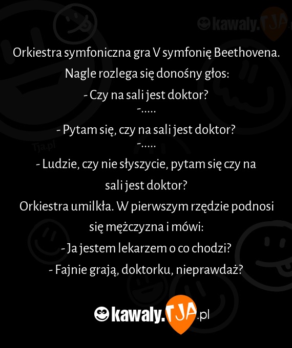 Orkiestra symfoniczna gra V symfonię Beethovena. Nagle rozlega się donośny głos: