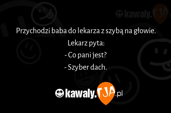 Przychodzi baba do lekarza z szybą na głowie. Lekarz pyta: - Co pani jest? - Szyber dach.