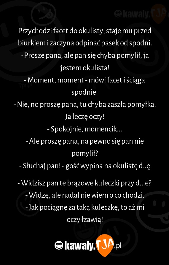 - Proszę pana, ale pan się chyba pomylił, ja jestem okulista!