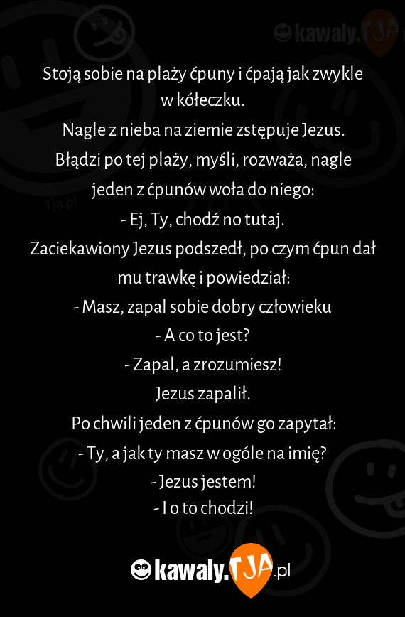 Zaciekawiony Jezus podszedł, po czym ćpun dał mu trawkę i powiedział: