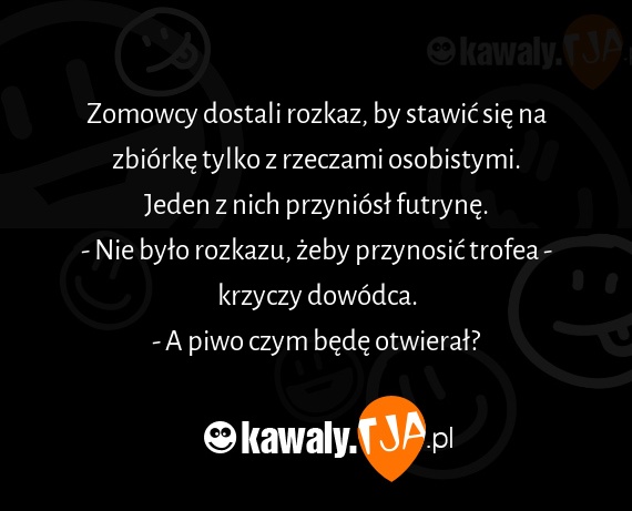 [url=https://kawaly.tja.pl/dowcip,zomowcy-dostali-rozkaz-by-stawic-sie]Zomowcy dostali rozkaz, by stawić się na zbiórkę tylko z rzeczami osobistymi.