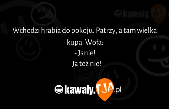 Wchodzi hrabia do pokoju. Patrzy, a tam wielka kupa. Woła: - Janie! - Ja też nie!