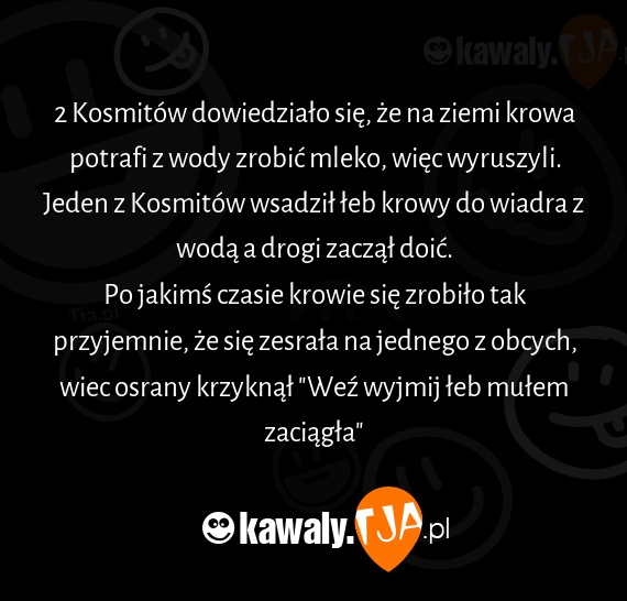 2 Kosmitów dowiedziało się, że na ziemi krowa potrafi z wody zrobić mleko, więc wyruszyli.
