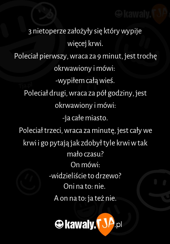Poleciał trzeci, wraca za minutę, jest cały we krwi i go pytają jak zdobył tyle krwi w tak mało czasu?