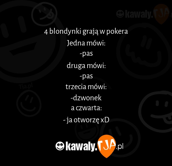 4 blondynki graja w pokera Jedna mowi: -pas druga mowi: -pas trzecia mowi: -dzwonek a czwarta: - ja otworze xD