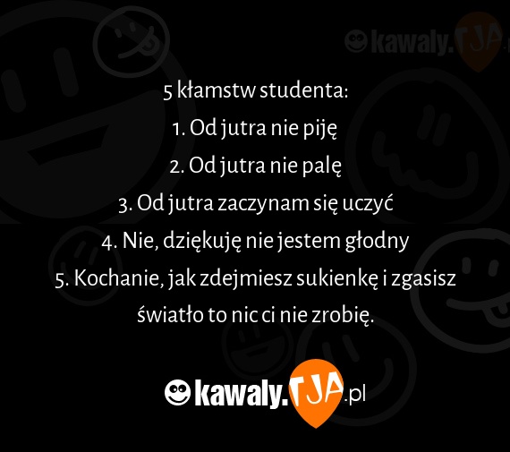 5 kłamstw studenta: 1. Od jutra nie piję 2. Od...