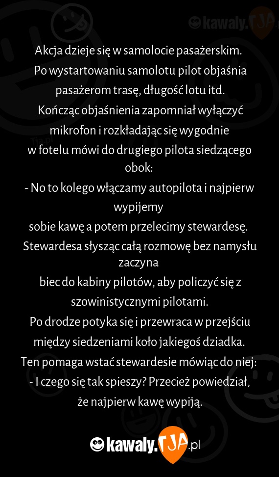 Stewardesa słysząc całą rozmowę bez namysłu zaczyna