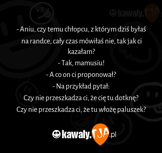 - Aniu, czy temu chłopcu, z którym dziś byłaś na randce, cały czas mówiłaś nie, tak jak ci kazałam?