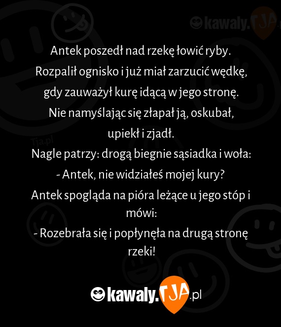 Rozpalił ognisko i już miał zarzucić wędkę, gdy zauważył kurę idącą w jego stronę.