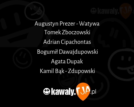 Augustyn Prezer - Watywa Tomek Zboczowski Adrian Cipachontas Bogumil Dawajdupowski Agata Dupak Kamil Bak - Zdupowski