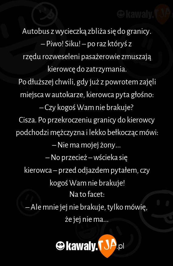 – No przecież – wścieka się kierowca – przed odjazdem pytałem, czy kogoś Wam nie brakuje!