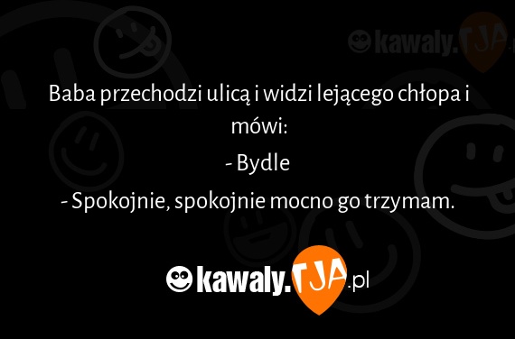 Baba przechodzi ulicą i widzi lejącego chłopa i mówi: - Bydle - Spokojnie, spokojnie mocno go trzymam.