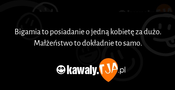 Bigamia to posiadanie o jedna kobiete za duzo. Malzenstwo to dokladnie to samo.