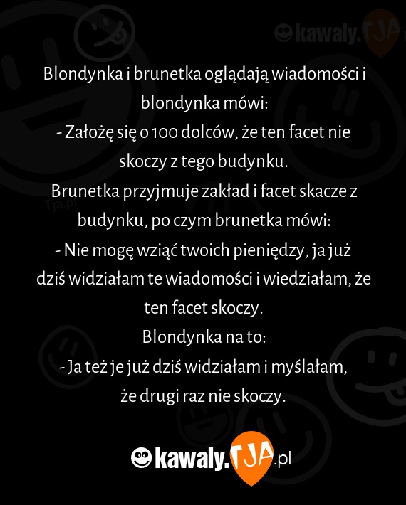 Brunetka przyjmuje zakład i facet skacze z budynku, po czym brunetka mówi: