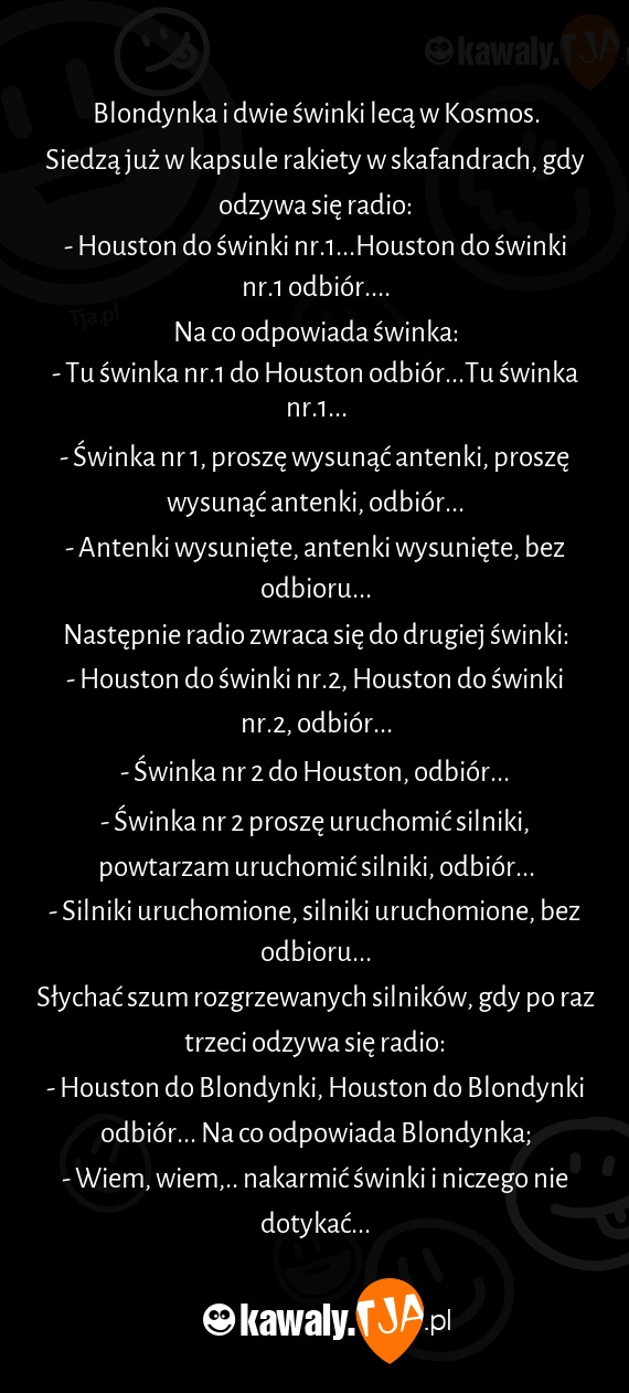 - Houston do Blondynki, Houston do Blondynki odbiór... Na co odpowiada Blondynka;