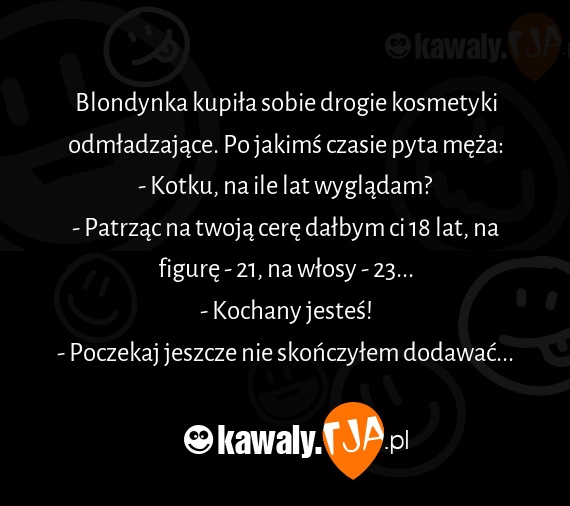 Blondynka kupiła sobie drogie kosmetyki odmładzające. Po jakimś czasie pyta męża: