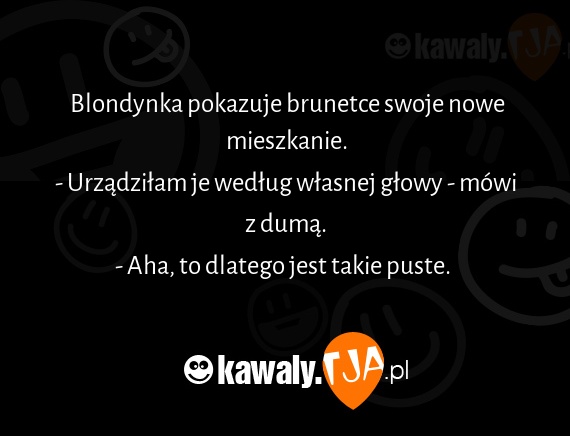 Blondynka pokazuje brunetce swoje nowe mieszkanie. - Urządziłam je według własnej głowy - mówi z dumą. - Aha, to dlatego jest takie puste.