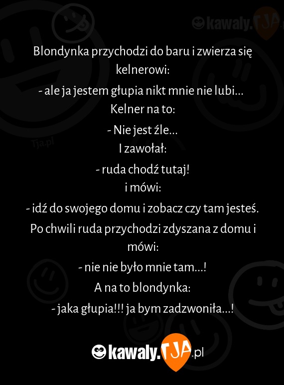 Blondynka przychodzi do baru i zwierza siÄ™ kelnerowi: