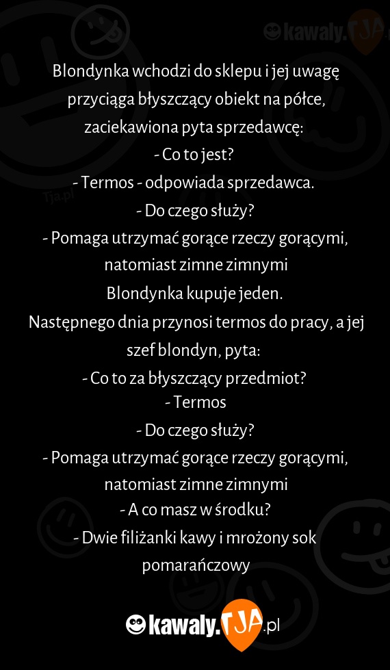 Blondynka wchodzi do sklepu i jej uwagę przyciąga błyszczący obiekt na półce, zaciekawiona pyta sprzedawcę: