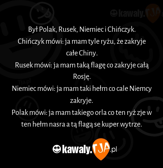 Polak mówi: ja mam takiego orla co ten ryż zje w ten hełm nasra a tą flagą se kuper wytrze.
