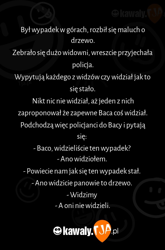 Był wypadek w górach, rozbił się maluch o drzewo.