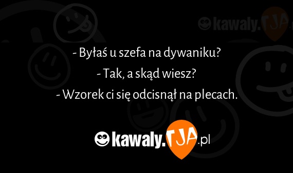- Bylas u szefa na dywaniku? - Tak, a skad wiesz? - Wzorek ci sie odcisnal na plecach.