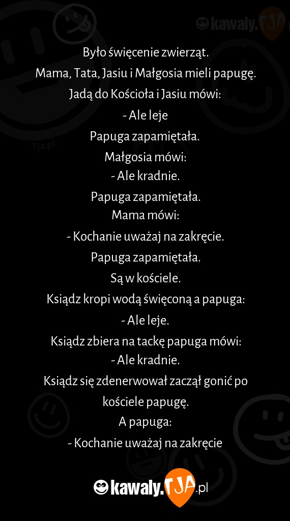 Mama, Tata, Jasiu i Małgosia mieli papugę.