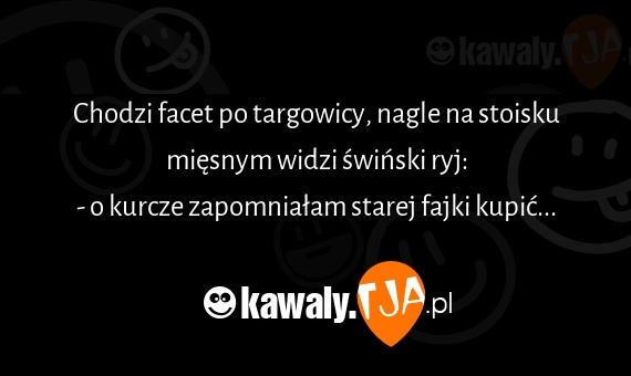 Chodzi facet po targowicy, nagle na stoisku mięsnym widzi świński ryj: - o kurcze zapomniałam starej fajki kupić...