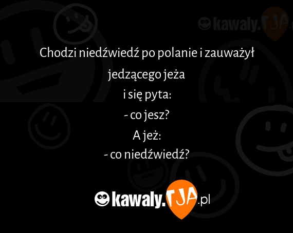 Chodzi niedźwiedź po polanie i zauważył jedzącego jeża i się pyta: - co jesz? A jeż: - co niedźwiedź?
