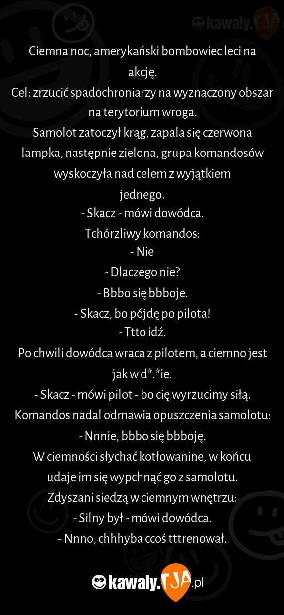 - Skacz - mówi pilot - bo cię wyrzucimy siłą.