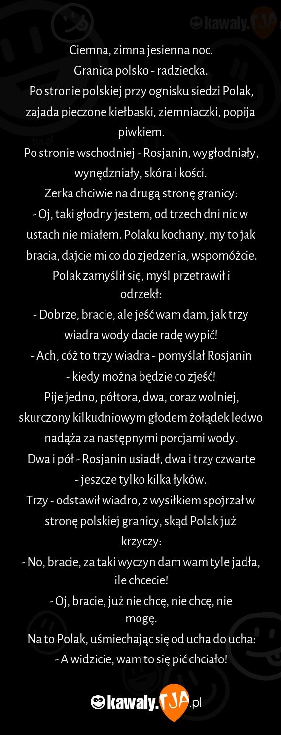 - Ach, cóż to trzy wiadra - pomyślał Rosjanin - kiedy można będzie co zjeść!