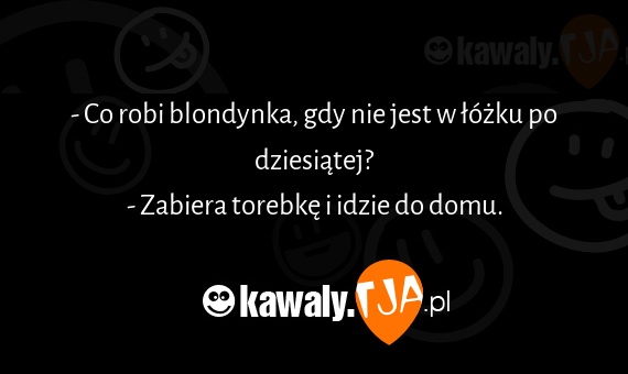- Co robi blondynka, gdy nie jest w łóżku po dziesiątej? - Zabiera torebkę i idzie do domu.
