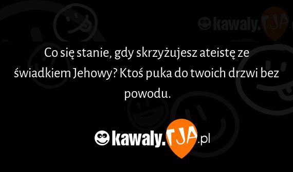 [url=https://kawaly.tja.pl/dowcip,co-sie-stanie-gdy]Co się stanie, gdy skrzyżujesz ateistę ze świadkiem Jehowy? Ktoś puka do twoich drzwi bez powodu.[/url]