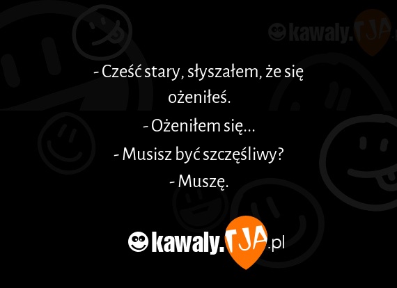 - Cześć stary, słyszałem, że się ożeniłeś. - Ożeniłem się... - Musisz być szczęśliwy? - Muszę.