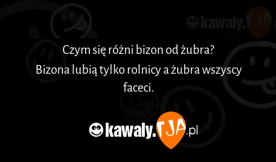 Czym sie rozni bizon od zubra? Bizona lubia tylko rolnicy a zubra wszyscy faceci.