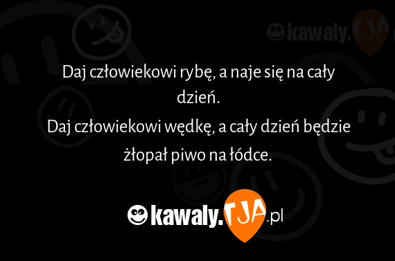 Daj czlowiekowi rybe, a naje sie na caly dzien. Daj czlowiekowi wedke, a caly dzien bedzie zlopal piwo na lodce.