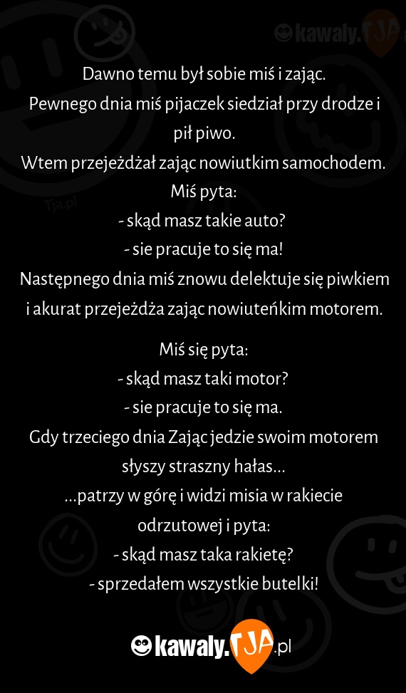 Wtem przejeżdżał zając nowiutkim samochodem.