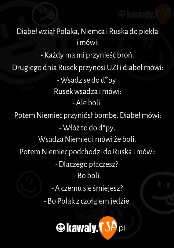 Diabeł wziął Polaka, Niemca i Ruska do piekła i mówi: