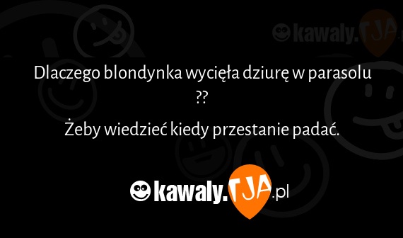 Dlaczego blondynka wycięła dziurę w parasolu ?? Żeby wiedzieć kiedy przestanie padać.