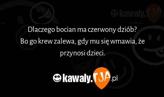 Dlaczego bocian ma czerwony dziob? Bo go krew zalewa, gdy mu sie wmawia, ze przynosi dzieci.